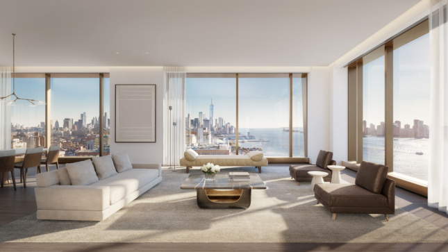 The two towers, one each on the east (No. X) and west (No. I) portion of the site, will rise to 300 feet and 400 feet, respectively. Each are clad in a travertine composite facade expressive of the underlying concrete structure behind it, with expansive punched windows with a bronze finish. “With its punched windows and gridded structural facade, The Eleventh echoes the pragmatic rationality of the neighborhood’s historic warehouses, while its sculptural geometry gives it a kinship to the local arts community,” Bjarke Ingels, founding partner of BIG, said in a statement. “The past and present of Chelsea [are] merging in a new hybrid identity.” The choice of materials helps the pair stand out among the surrounding concrete and steel structures.