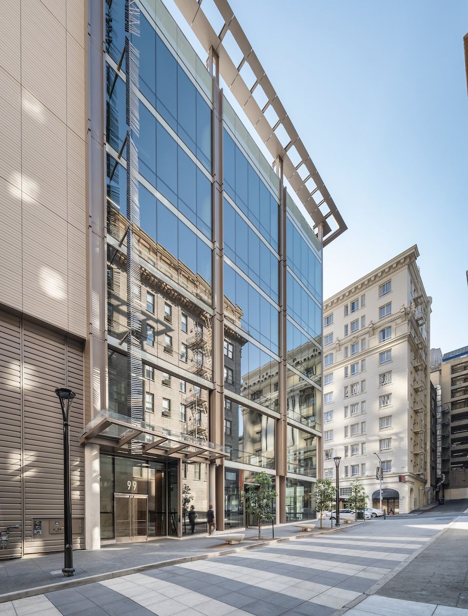 MBH worked closely with the city to balance the modern detailing of the facade with elements consistent with the historic Kearny/Market/Mason/Sutter conservation district. “Union Square is in many ways a representation of San Francisco itself, with its large and small, tall and short, colorful and quaint buildings, all standing shoulder to shoulder in incredible harmony,” said John McNulty, founding principal and architect at MBH. “Engaging with this sense of rhythm was one of our design goals; we were intent on bringing to life a building that is complementary to the neighborhood and adds to the enjoyment of walking and being in the area.” Ringing in at 70,000 square feet, the project will eventually be home to retail on the first three stories and office space on the remaining floors.
