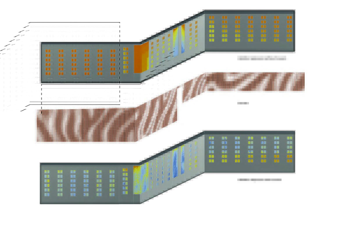 The newest residence hall at Arizona State University in Tempe, the Tooker House, creates an impactful addition to the campus while addressing the intense solar radiation in Arizona. Solomon Cordwell Buenz’s (SCB) design consists of two parallel masses running east to west and interlocking diagonally in the middle. While the building has an expansive south-facing facade, the project mitigates solar radiation through multiple approaches.