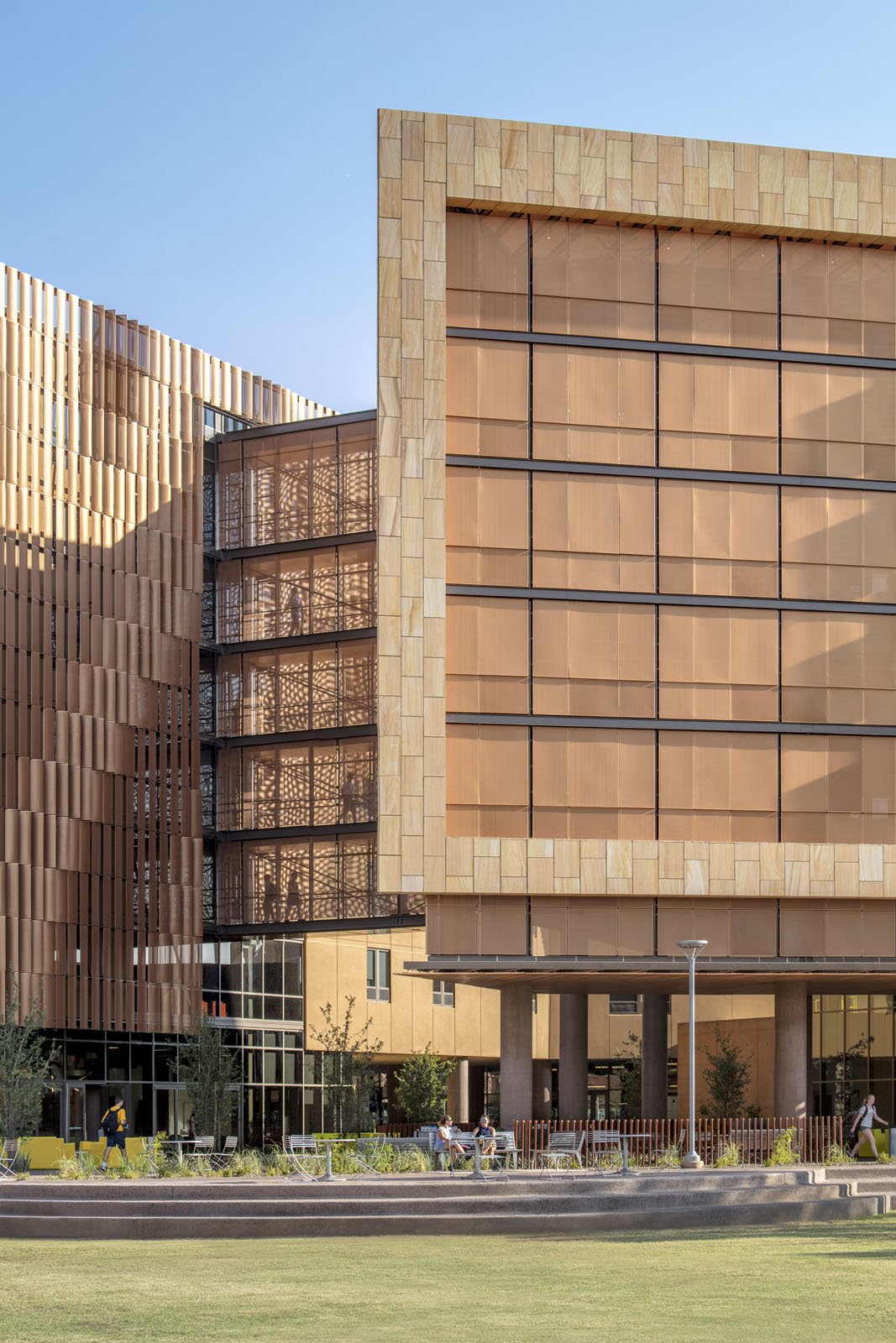 Due to Tempe’s climate, the solar shading strategies were particularly important in the design approach. SCB conducted an intensive sun shading analysis on all facade exposures. The goal was to create a facade which achieved a 20-25% reduction of solar heat gain and offered visual transparency to the student rooms behind.