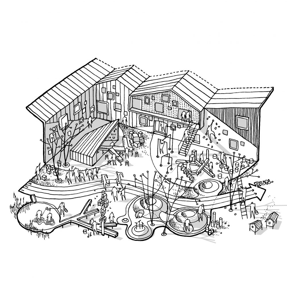 CEBRA views “the combination of high-and-low ceilinged, light and dimmed, small and large spaces,” as a vehicle for “the children to turn to different social situations–large assemblies, smaller groups or alone–depending on their needs and moods.”