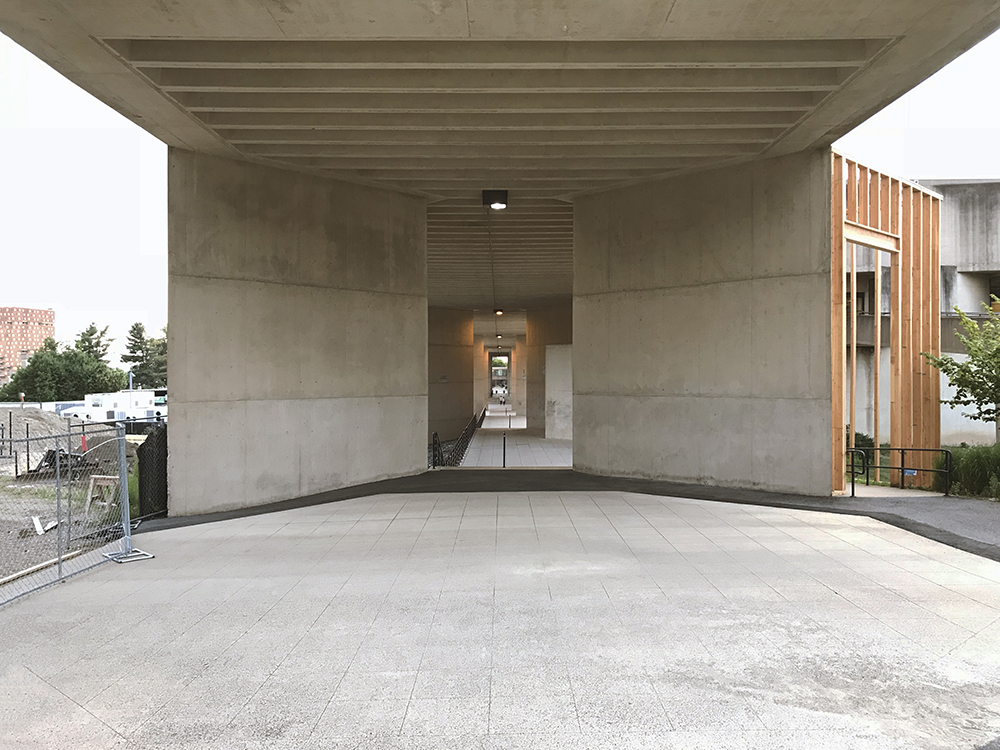 In July 2018, Collective-LOK (CLOK) unveiled their Roche/Dinkeloo Double, a temporary installation located below a cantilevered section of UMass Amherst’s Fine Arts Center. CLOK is a collaboration formed by architects Jon Lott, William O’Brien Jr., and Michael Kubo.