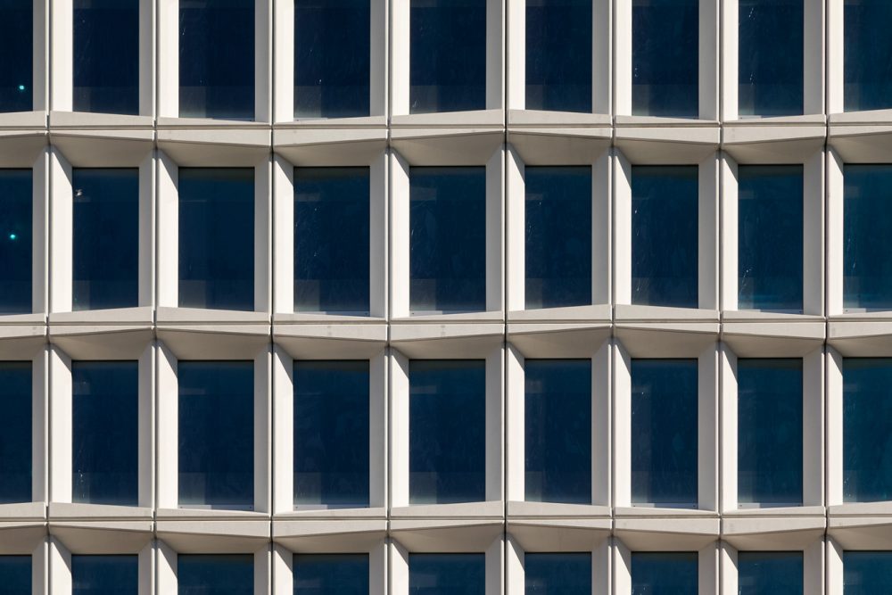 For the facade, COOKFOX opted for precast concrete panels for both stylistic and performative decisions. “We fine-tuned the shape for each solar exposure to create a self-shading performative facade that decreases solar heat gain during the summer months,” said COOKFOX senior associate Arno Adkins. “We were also very inspired by the history of the sugar refinery and the physical characteristics of sugar; shape, color, shadow, and reflectivity. We designed the precast around these characteristics to create a site-specific design that connects to the history of the place.” The result is a collection of deep-set modules with chamfered mullions and spandrels that slightly variate according to elevation and function as an intended shading device.