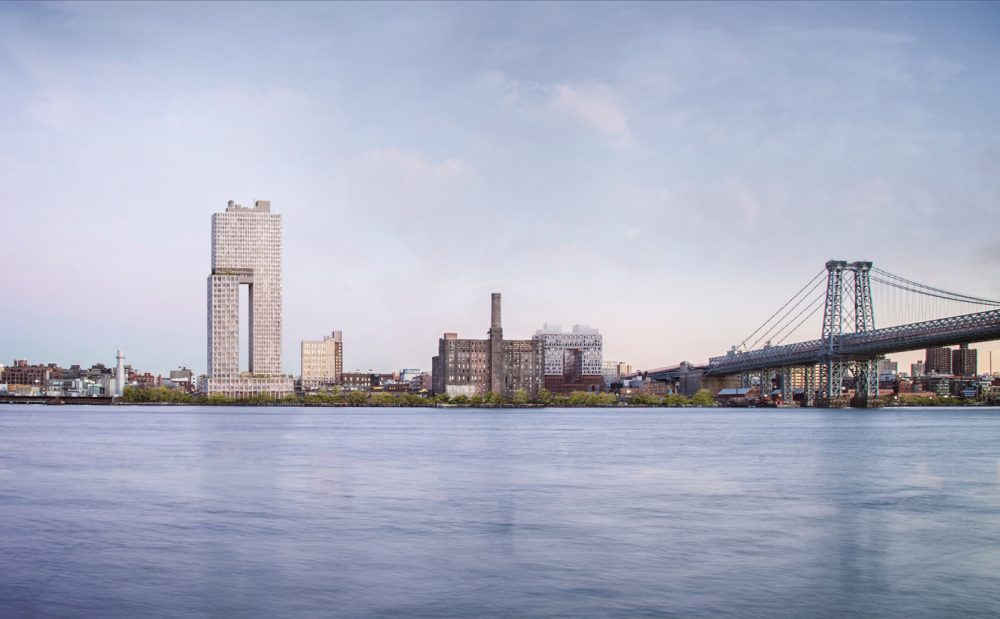 The waterfront surrounding Brooklyn’s former Domino Sugar Refinery continues to rise at a dizzying pace and, similar to DUMBO to the south, this spate of growth is led by Two Trees Development—ongoing projects include PAU’s reinvention of the Domino Sugar Refinery and the recently announced BIG-designed towers. Unlike other sections of the Williamsburg waterfront which are dominated by swaths glass high-rises, the Domino Sugar site is a largescale demonstration of opacity. Ten Grand and One South First, a project designed by architectural practice COOKFOX, continues the trend with custom-blended aggregate precast concrete panels.