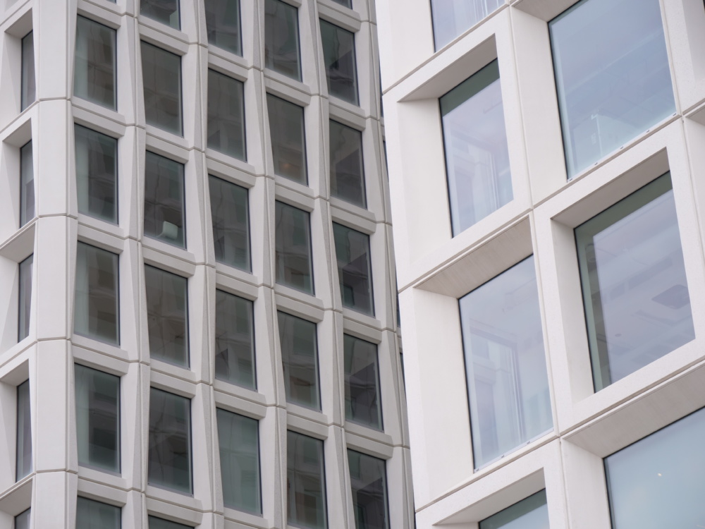 For the facade, COOKFOX opted for precast concrete panels for both stylistic and performative decisions. “We fine-tuned the shape for each solar exposure to create a self-shading performative facade that decreases solar heat gain during the summer months,” said COOKFOX senior associate Arno Adkins. “We were also very inspired by the history of the sugar refinery and the physical characteristics of sugar; shape, color, shadow, and reflectivity. We designed the precast around these characteristics to create a site-specific design that connects to the history of the place.” The result is a collection of deep-set modules with chamfered mullions and spandrels that slightly variate according to elevation and function as an intended shading device.