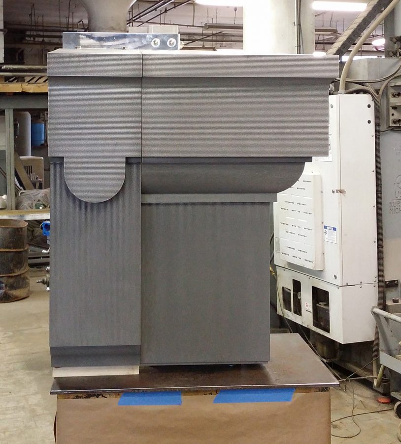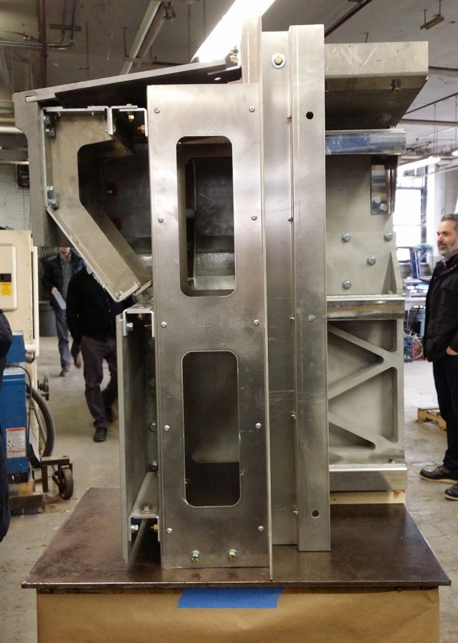 The upper floors employ a glass fiber reinforced concrete (GFRC) panel with spray on coating with aluminum particles that mimics the look of the plasma finish of the metal panels. The custom cast panels are installed onto the facade as a rain screen assembly using a standard clip and Z-girt system backing up to a stud wall. The facade is panelized with a “modular rationality” coordinated with the composition of the punched windows of the facade. An overlapping tongue detail developed by the project team helps to minimize panel joints.