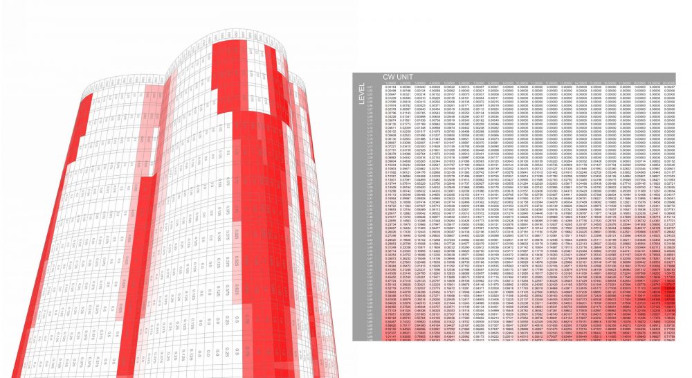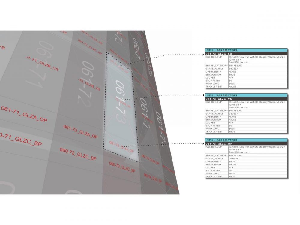 “We worked very closely with curtain wall fabricators from concept through execution, and the tower’s form is a product of this close collaboration,” said facade consultant Neil Thelen. “Using a collaborative parametric approach, we were able to iterate and analyze the impact of the tower’s curved forms on critical parameters such as IGU cold-warping, aluminum extrusion die option, unique part and assembly reduction, gasket engagement, and window operation.”