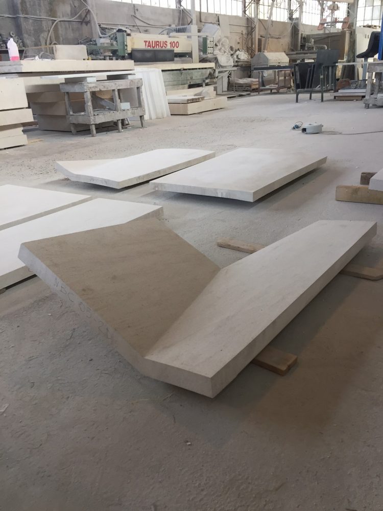 The 914-foot-tall project rises from a CNC-fabricated limestone base sourced from Carrara, Italy. According to the design team, parametric guidelines and 3-D modeling facilitated a seamless design-to-fabrication process for both the approximately 1800 stone panels and their steel support systems produced in Queens and New Jersey. The rear of each panel is studded with metal angles fastened to a network of bent plates attached to the steel support system.