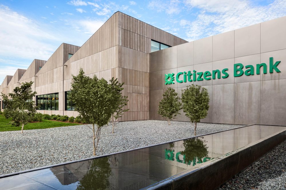 The Citizens Bank Corporate Campus in Johnston, Rhode Island, is not a subtle complex—it’s composed of five sprawling buildings across a 123-acre site. Designed by Boston-based architectural practice Elkus Manfredi, the project serves as a new facility to accommodate approximately 3,000 financial services employees and all five buildings are predominantly clad with ultra-high-performance concrete and low-E glass laid over zig-zagging forms.