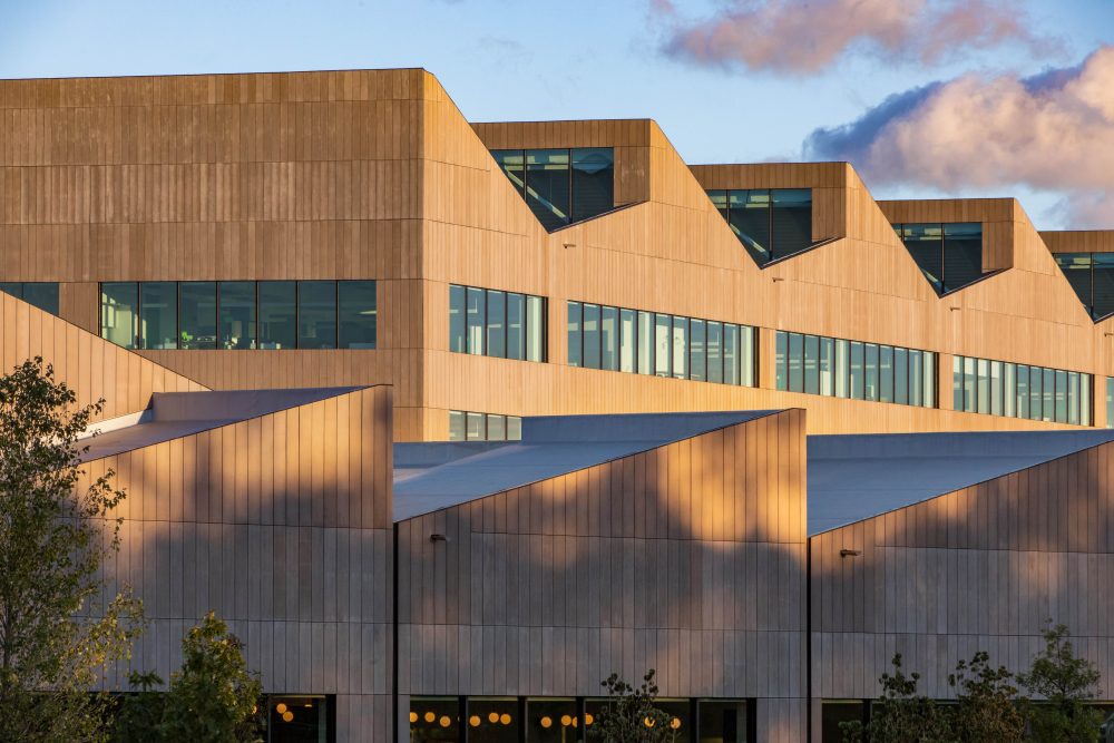 In terms of transitions, the meeting point between the window and roof proved to be one of the most challenging aspects of the project. The initial vision was for the panels to project over the glass curtain wall as a screen, with the boards stopping at the roofline without any metal coping. Ultimately, the design and facade consultancy teams settled on a narrow coping to control moisture whilst maintaining the clear lines of the gabled roofline.