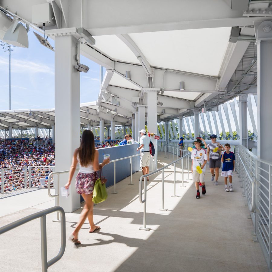 Located adjacent to the New York State Pavilion—the host of the 1964 World’s Fair—the USTA Billie Jean King National Tennis Center hosts the annual US Open Tournament, one of the oldest tennis championships in the world. In an effort to better utilize the sports campus, Detroit-based ROSSETTI developed a master plan to move the Grandstand Stadium to a far corner of the grounds. The relocation expanded USTA’s leasable land into Flushing Meadows Corona Park.