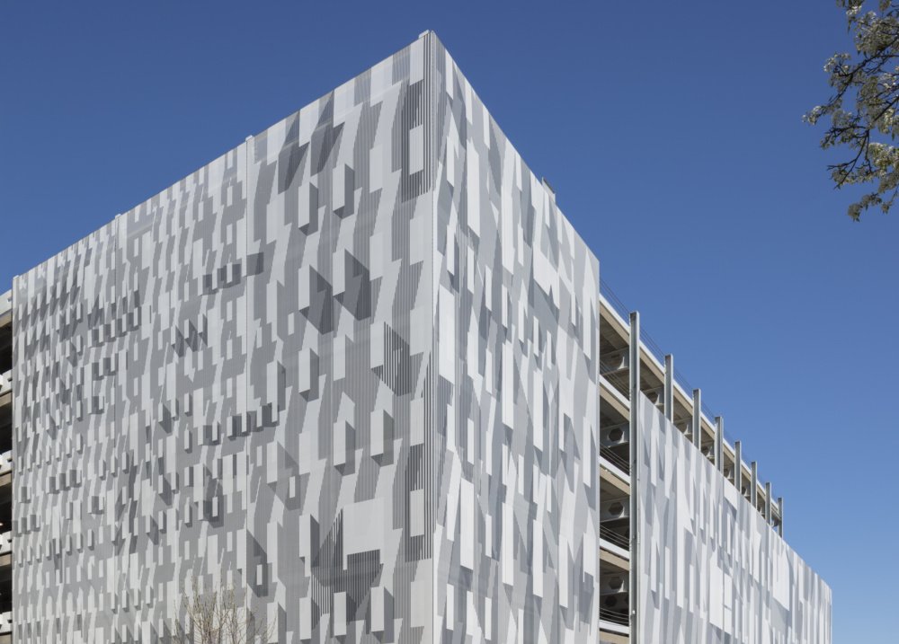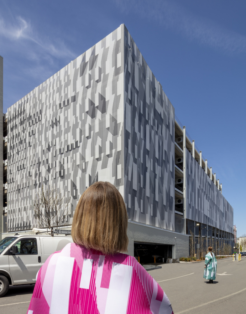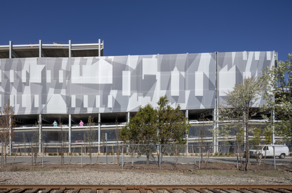 The rapid development of urban areas across the country is leading to the reappraisal of the commonly found, and often maligned, parking garage. Boston-based architectural practice French 2D has joined this trend by invigorating a drab parking garage using a mesh facade with dynamic graphics intended to serve as a large-scale artistic canvas as well as a functional enclosure.