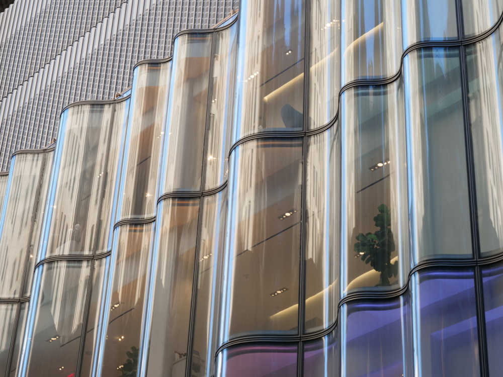 The JCDA-designed curtain wall is the public face for the retailer along the store’s south and north elevations—the store also includes several buildings located on adjacent Broadway. Reaching a height of seven stories, the translucent exterior presents a striking streetwall that, in certain respects, resembles the articulated stone-and-brick massing of abutting historic structures, and, according to JCDA, its wavelike form is an homage to the East and Hudson Rivers bounding Manhattan.