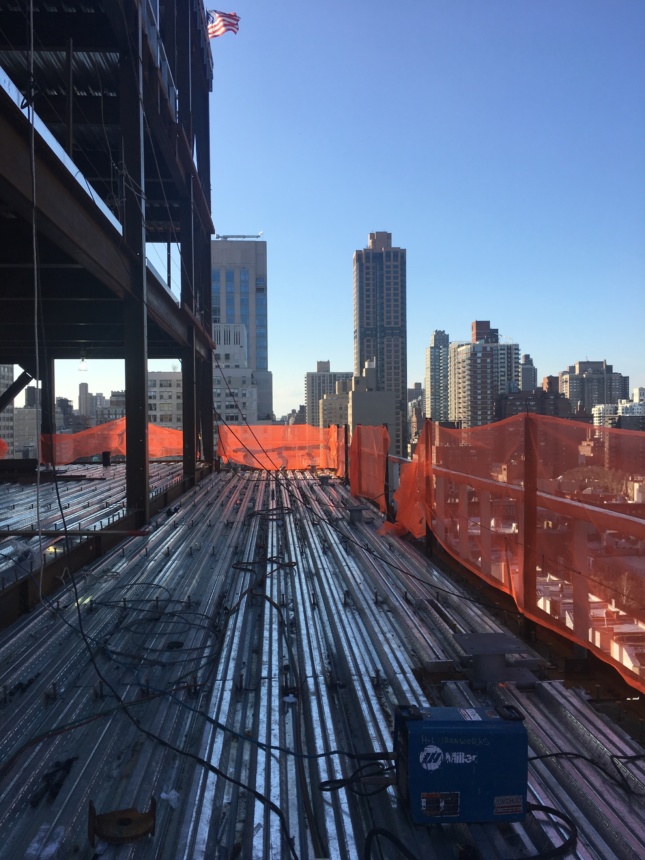 Located on a relatively small 75-foot by 100-foot lot with fairly stringent city zoning, laying out the building’s programming and structural system proved a particular challenge for the design and structural teams. “The diverse program coupled with city-mandated setbacks was a real jigsaw puzzle; all in all this made for interesting stacking with all floors above the fifth having no columns on the interior aside from the long core that occupies a 12-foot narrow strip along an interior property line,” continued Constable. “It is not always our first choice to put a 600-person auditorium seven stories in the air with a gym on top of it, but that’s what had to happen here.”