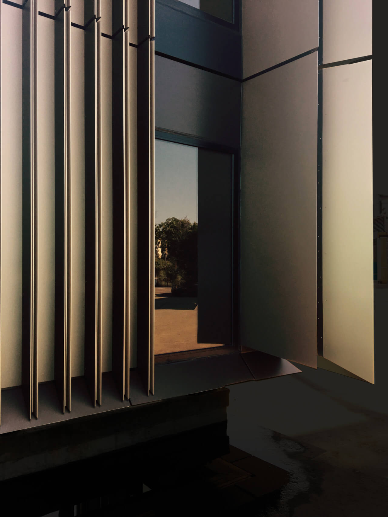 Contemplating this paradoxical aim, Tehrani reached for an old bit of sleight of hand. Because the lozenge-shaped tower was oriented east to west, its broad sides would be visible up and down Main Street—the opposite of inconspicuous. Breaking up those exteriors into alternating bands of glass and anodized aluminum unitized panels would give the eye more to do, but staggering them, the NADAAA team discovered, would trigger a sensation akin to the cafe wall illusion. Color gradations in the paneling and their concave depressions, which produce subtle shadowing, reinforce the feeling of variability.