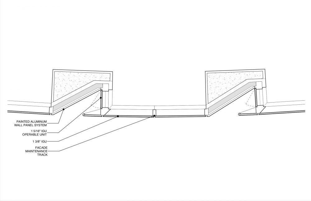 Much like the individual panes of glass, the overall facade is more complicated than it at first appears. Subtle incisions break up the massing of the upper 40 floors, creating protected spaces for operable casements while formally suggesting large bay windows that distinguish the condominium units from the hotel rooms below. “I’m a great believer that, especially in a city, it’s important to bring out the different uses that are taking place [in a tower],” Henry Cobb told the audience in June at AN’s Facades+ conference in Boston.