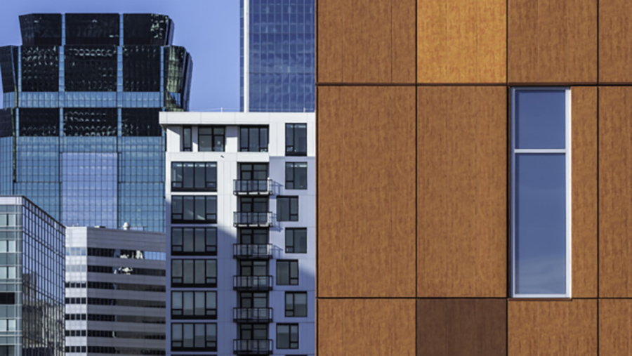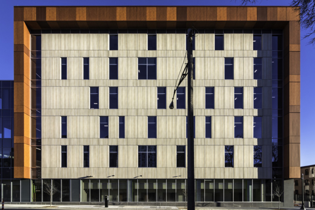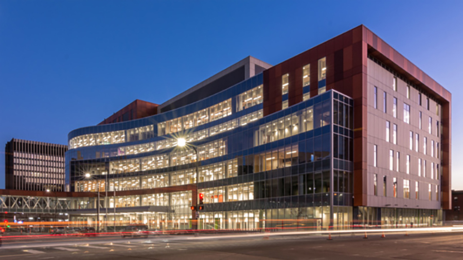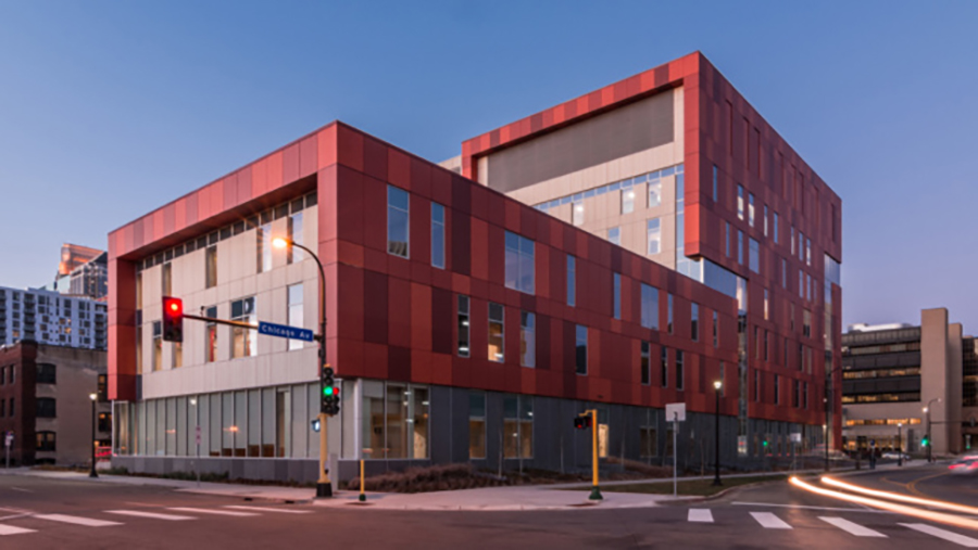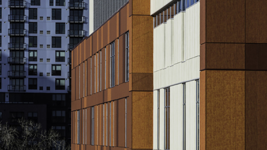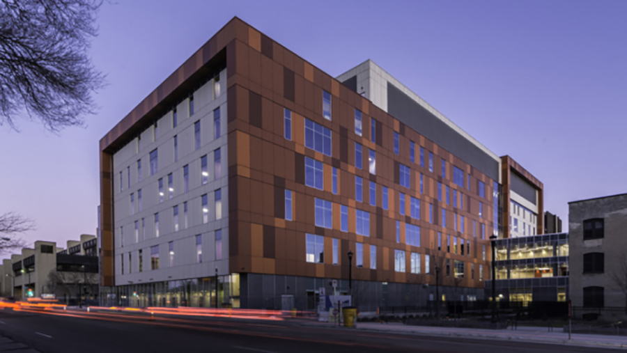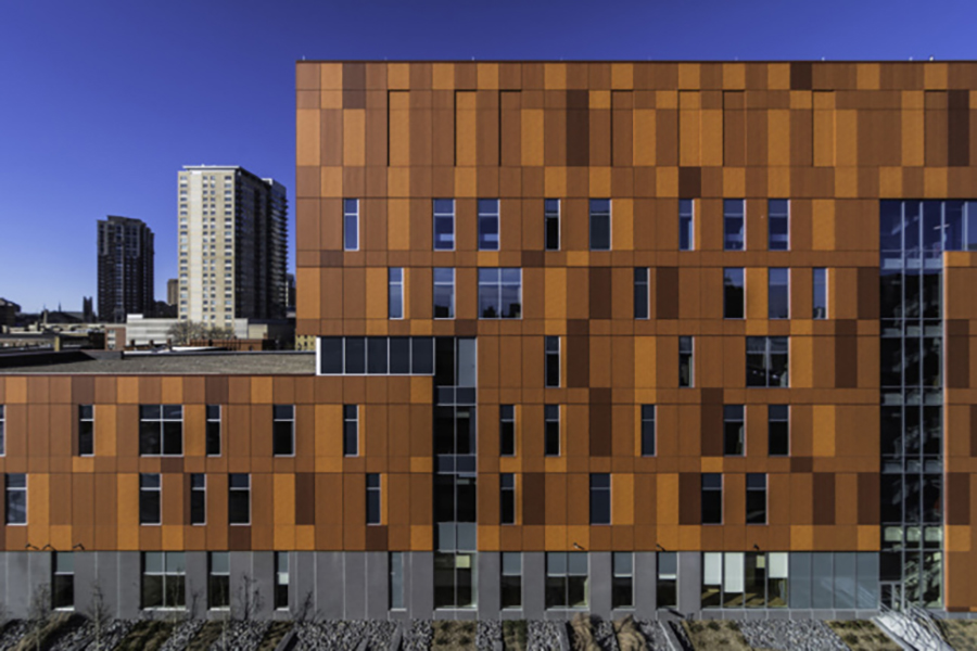 Reorganizing nearly two million square feet to offer centralized and accessible care for people who need convenient access to a doctor, same-day surgery, or cancer treatment, Hennepin County Medical Center’s latest project is a new six-story building that consolidates over 40 primary and specialty clinics currently spread across nine buildings. The healthcare project, led by local architect BWBR, has resulted in Minneapolis/Saint Paul’s largest teaching hospital. The project prominently features corrosion-resistant metal panel cladding printed with a “corten” patterning.