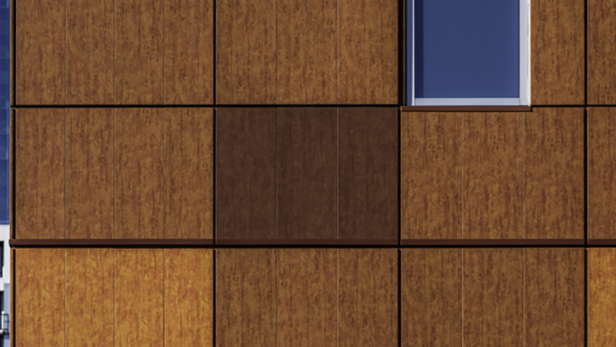 The design team started out by creating a high-resolution mapping of rust steel and wood grains and manipulated them digitally to be suitable for an application massive in scale. The specific coloration, toning, and detailing of the imagery was finalized through an extensive process requiring several rounds of physical samples and on-site reviews. The collaborative design and manufacturing process allowed BWBR to control precisely the pattern and color that eventually was realized on the facade.