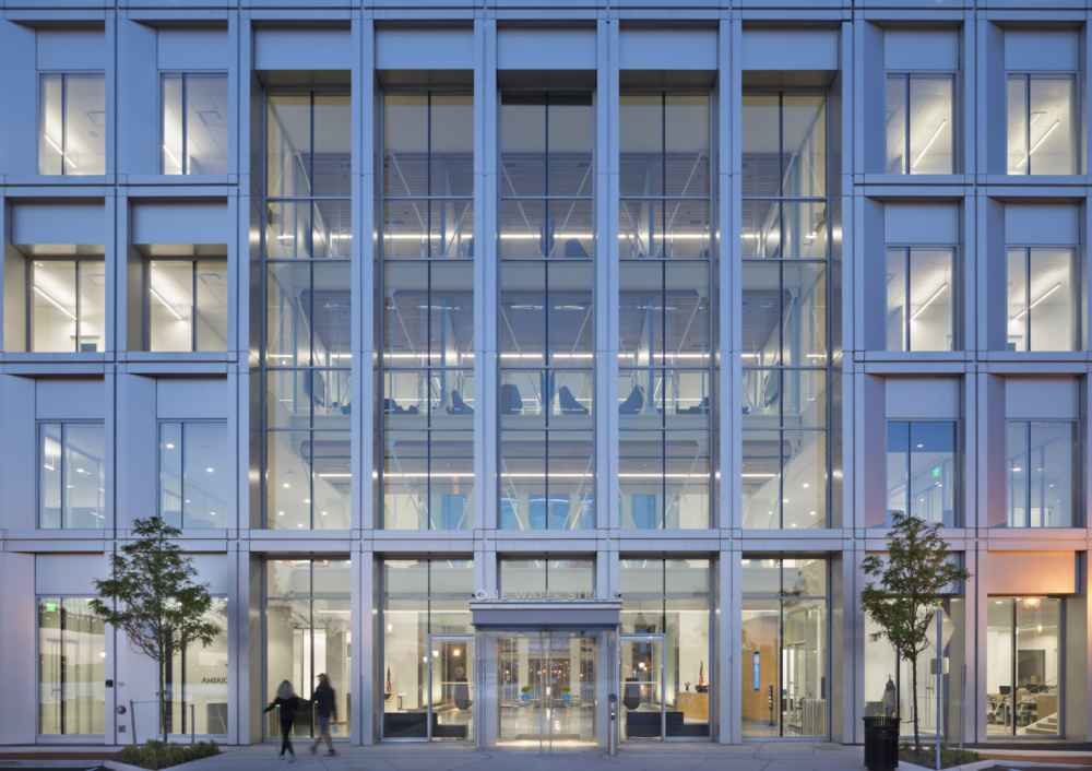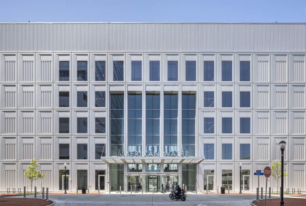 Opened in December 2018, the American Water Headquarters is the most recent significant addition to Camden, New Jersey’s, Delaware River waterfront and sits directly across from Philadelphia’s Center City. Designed by New York’s Robert A.M. Stern Architects (RAMSA), the corporate project articulates the former industrial character of the Rust Belt with an aluminum composite facade studded with significant chamfered window bays.