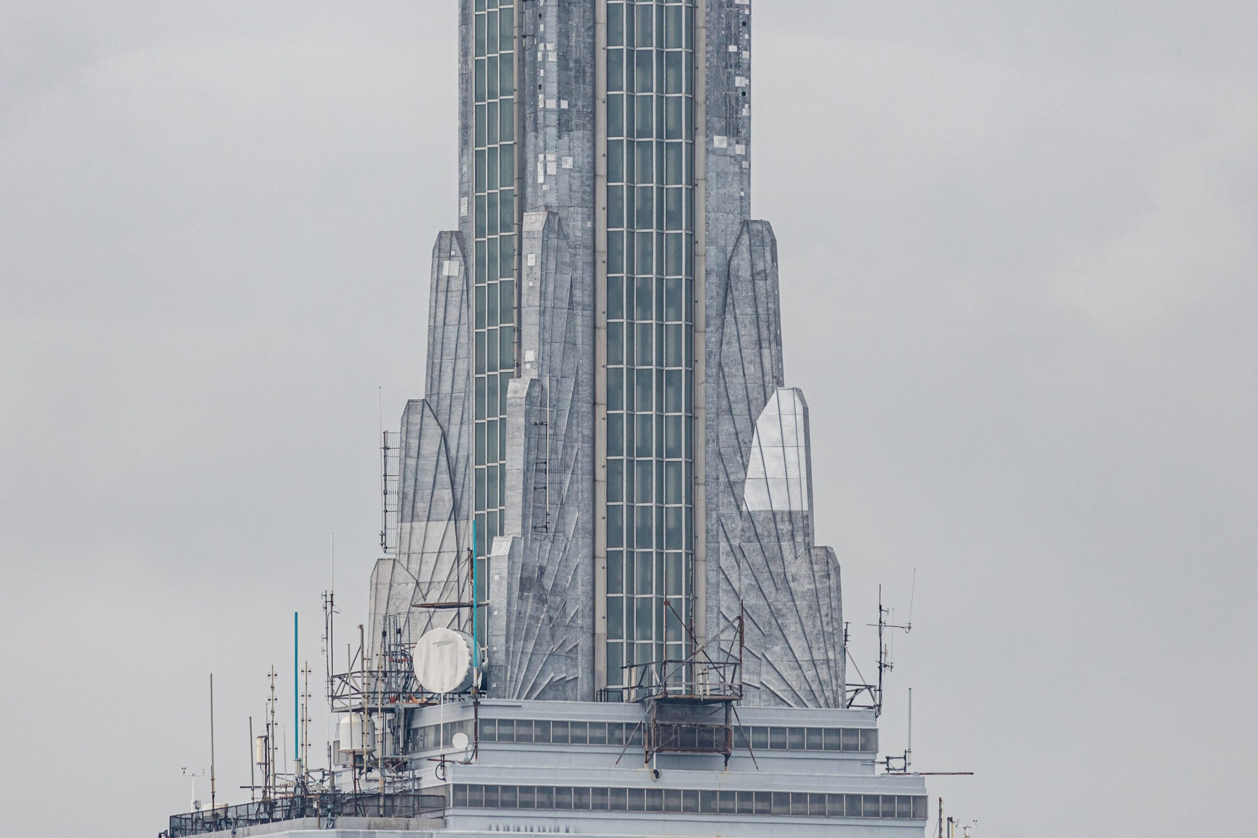 The Empire State Building, as one of the tallest and most centrally located towers within New York City, proved a more than an ideal site for transmission and broadcast equipment. Unfortunately, that role as an infrastructural hub for communications led to the clustered and haphazard installation of equipment across the mooring mast—an unsightly arrangement that hindered the spire’s long-term maintenance.