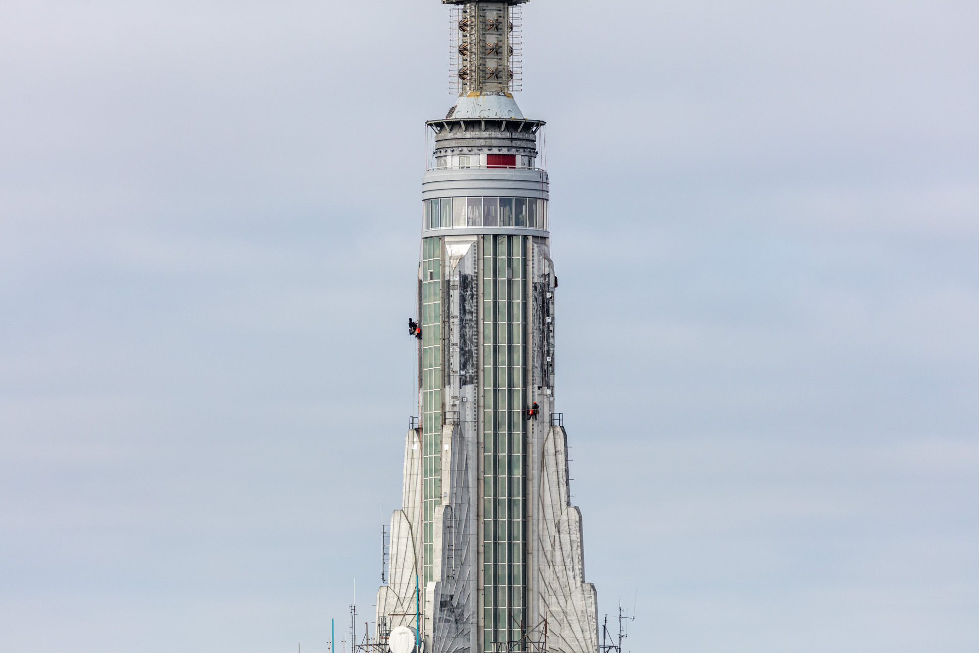 “In order to establish the required scope of restoration work, CANY performed both historical research and onsite assessment: original assemblies and the evolution of the mast as a communications tower were thoroughly explored,” said the team, consisting of CANY executive director Jarrett Huddleston and project manager Julie Foster, as well as JLL projects manager Richard Hauser, and Empire State Realty Trust director of design and construction Peter Sjolund. “The exterior was thoroughly assessed, photographed, and videoed, and deficiencies and instances of past penetrations were organized by type and location and a systematic plan developed for restoring the original historic fabric and silhouette of the sculptural Art Deco mast.”