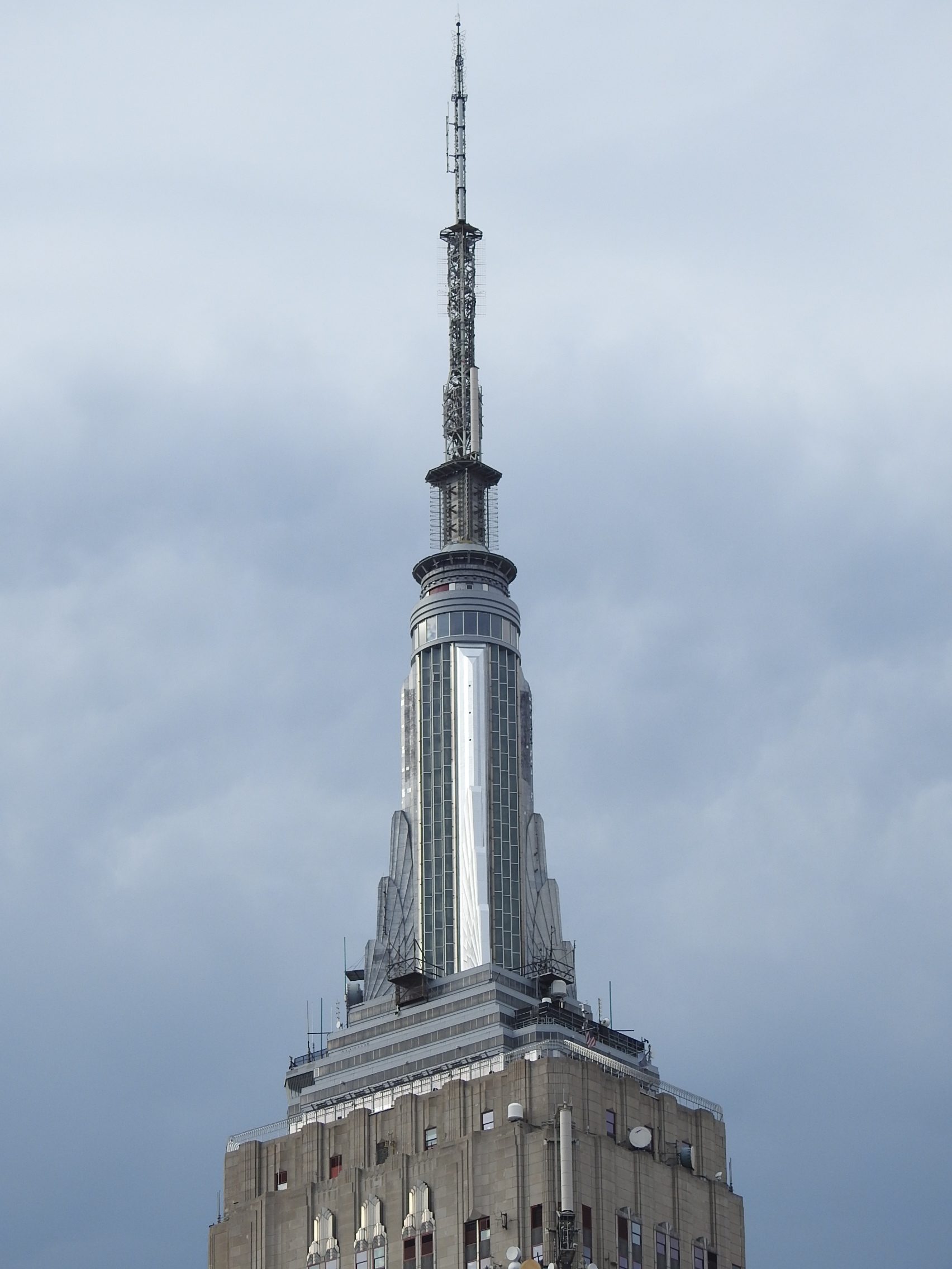 The restoration project removed 40,000 pounds of clutter from the spire and the installation of hundreds of new aluminum panels. (Courtesy of the Empire State Realty Trust)