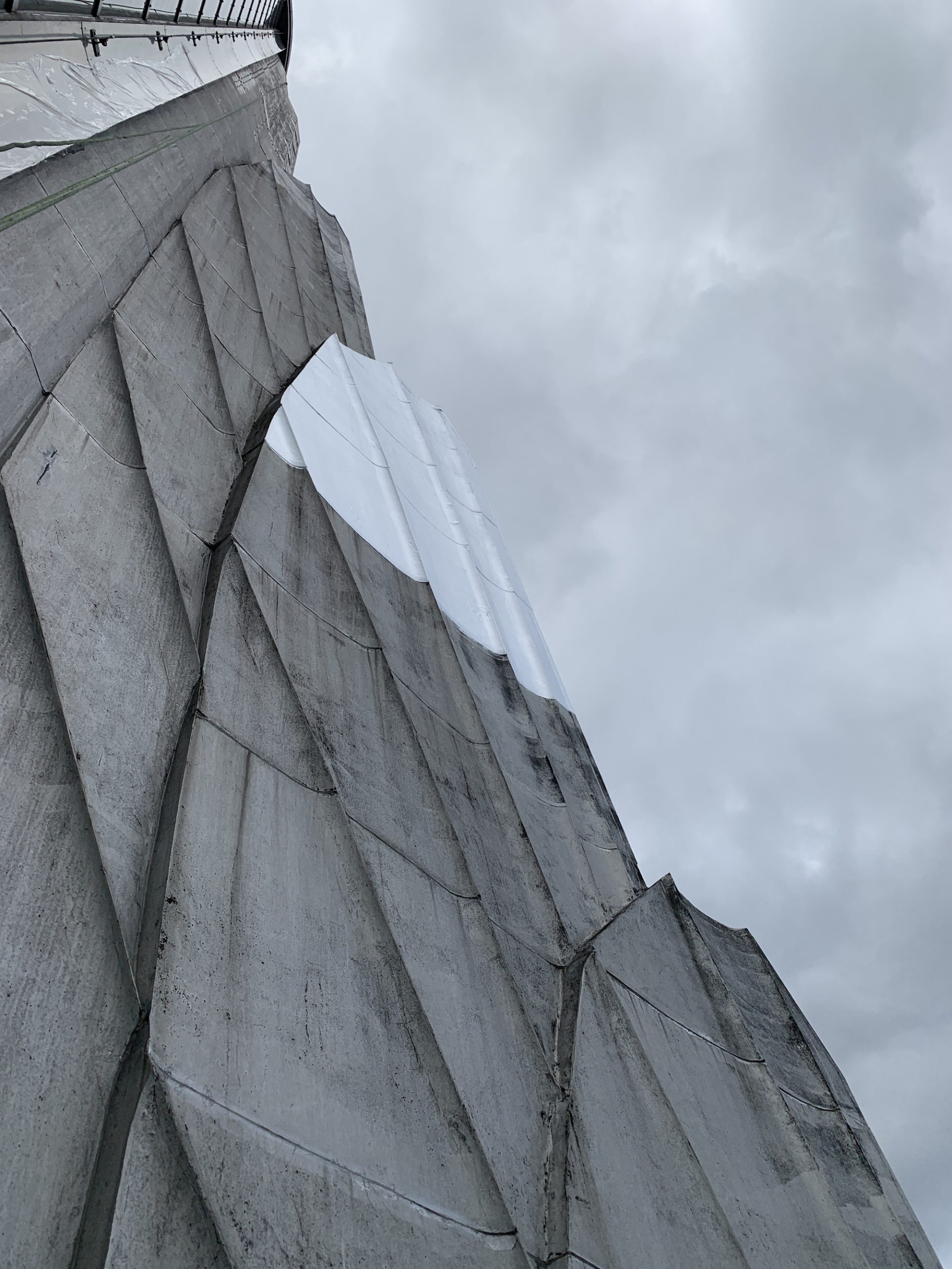The Cole NYC team, equipped with project elevation drawings as well as repair details documenting conditions across the spire, such as plate and casting repairs and dunnage penetrations, got to work setting their industrial rope access lines to climb and rappel across the mooring mast. In total, approximately 44,000-pounds of equipment were removed from the spire; detritus included a dozen antenna, and their network of ladders, railings, and platforms, as well as 1,500 abandoned plates and miscellaneous broadcasting equipment. Over 200 sandblasted aluminum plates, ranging in size from 4″-by-4″ to 4’0″-by-6’0″, were installed across the spire. Careful attention was paid to the fins found at the four corners of the spire, and each was 3D scanned to facilitate the production of accurate molds prior to fabrication by Allen Architectural Metals in Alabama.