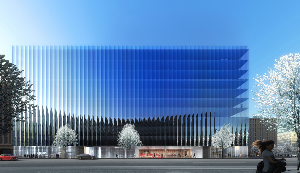 Set to open in mid-March, 2050 M Street is a novel commercial project located in the Dupont Circle neighborhood of Washington, D.C. REX, an architecture and design firm based in New York, is the design architect for the project. In contrast to the imposing massing of Beaux-Arts, Brutalist, and droll mid-century Miesian bootlegs that dominate the capital, the project presents a subtle and refined approach to the office block typology with its array of fluted glass panels.