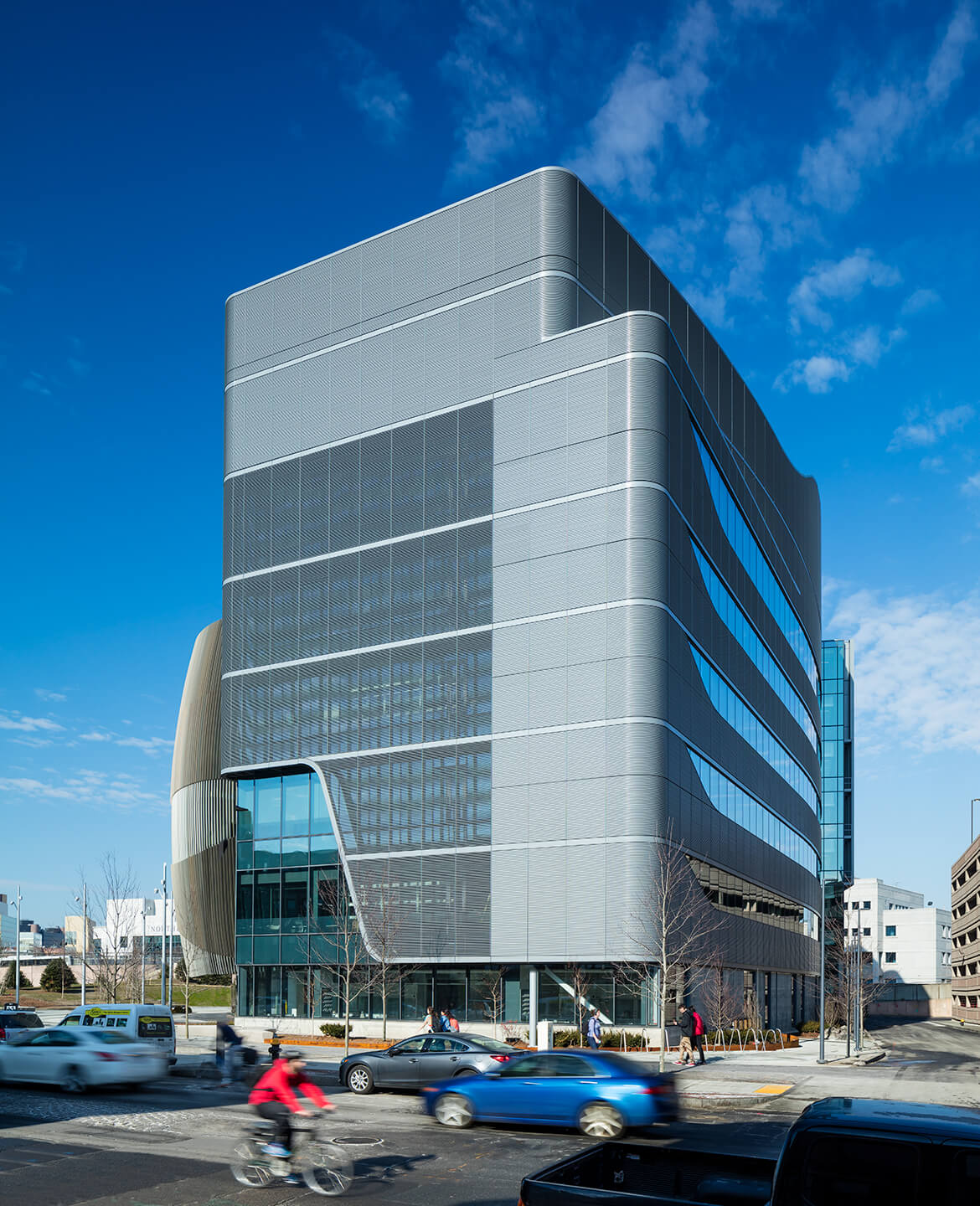 The only thing taller than the glowing, curved fins of the six-story Interdisciplinary Science and Engineering Complex building is its list of awards. Northeastern University’s new academic and research center, designed by Payette, has won over ten major awards since its design phase—most recently the 2021 AIA Architecture Award and 2021 AIA Regional & Urban Design Award. The building serves as a portal to enhance student life and the connection to the city, providing 234,000 square feet of academic space and merging with the nearby 4.7-mile linear park linking several neighborhoods and an active rail line.