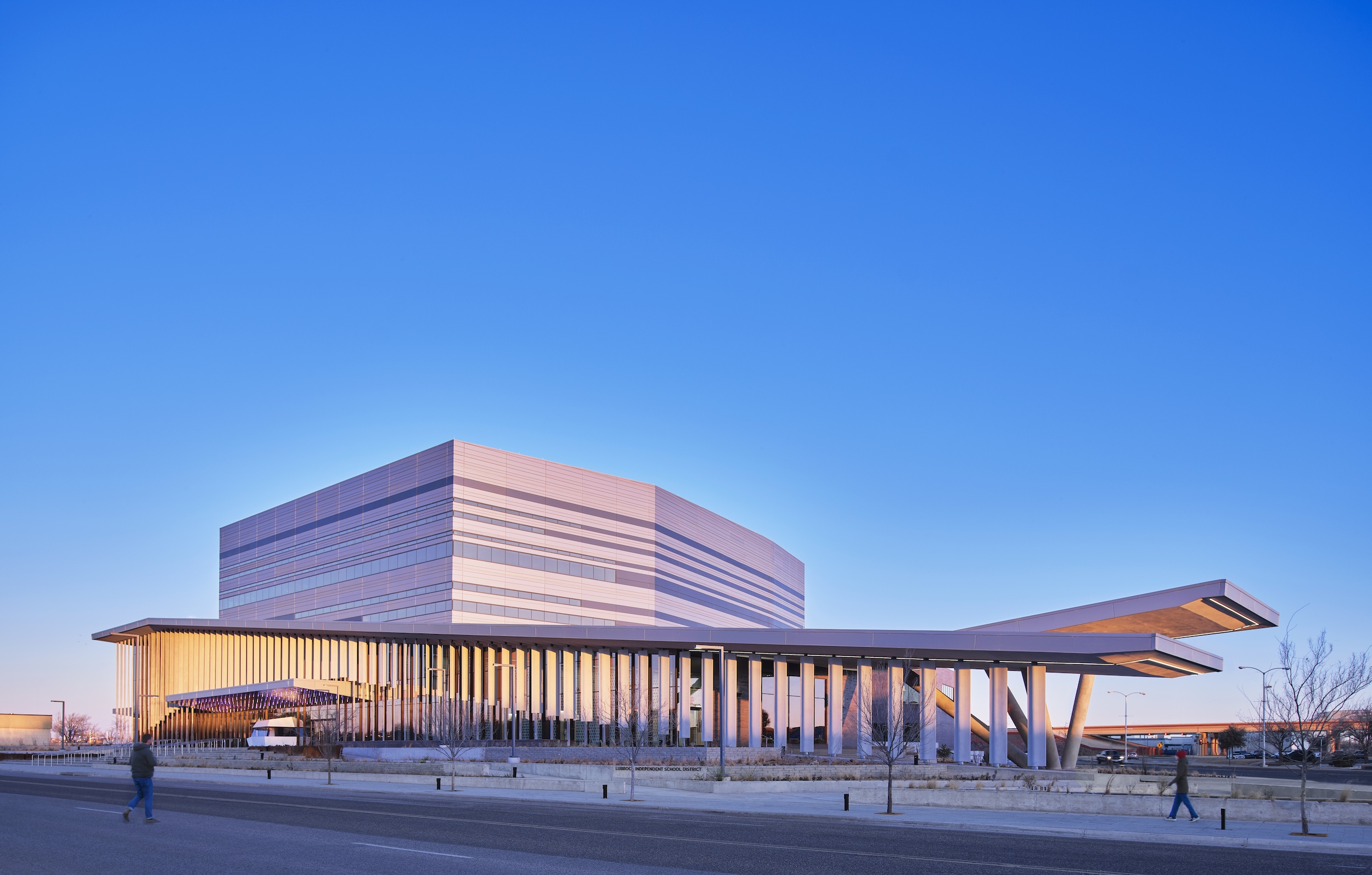 “Just as the idea for The Buddy Holly Hall grew from the Lubbock community, our modern design for the building is inspired by the region’s physical and cultural landscape,” said Matthew Lella, principal at Diamond Schmitt. “We designed a building that is both open and outward-looking and yet simultaneously invites the public to engage with all the activity happening inside. Responding to the unique challenges of the site—from the intense Texas heat to its location in a flood plain—we have created a signature new space for the performing arts with world-class facilities that embody the spirit of the performers who will be gracing its stages.”