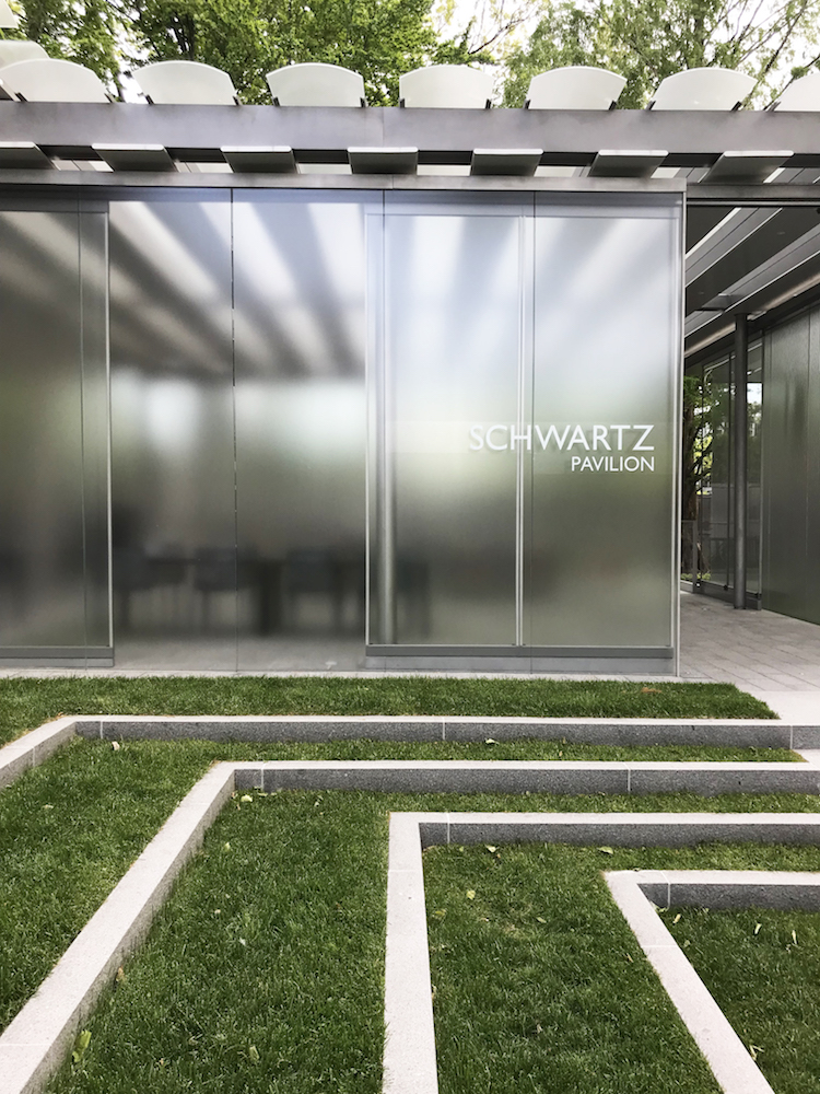 Featuring a sheltered terrace and a glass-enclosed space framed by two soaring, overlapping steel canopies of different heights, the Schwartz Pavilion’s design resonates during a time when natural light, air circulation, and the ability to spread out are urgent considerations.