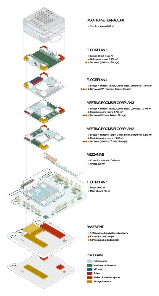 Convention centers owe their flexibility to their large, open floor plans. However, cladding and design often relegate these spaces into artificially illuminated and difficult to navigate venues for users. Estudio Herreros and Consorcio Bermudez Arquitectos’s Ágora-Bogotá, located in Colombia’s capital, responds to this stylistic quagmire with a multifaceted glass facade consisting of ten different treatments and electronically-controlled gills.