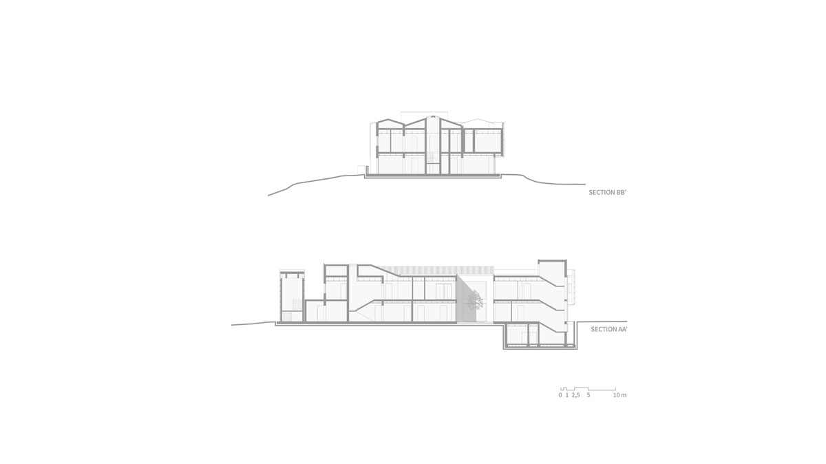 Casa Verde prioritizes social sustainability as well as sustainable land use. Hillside maintenance efforts were supported by reusing existing foundations from vicoli carbonai, or charcoal alleys, which were developed in the Middle Ages as an extension of San Miniato’s defensive system. Lightweight paneling on the facade helped minimize dead loads on the foundation to maintain the slope stability.