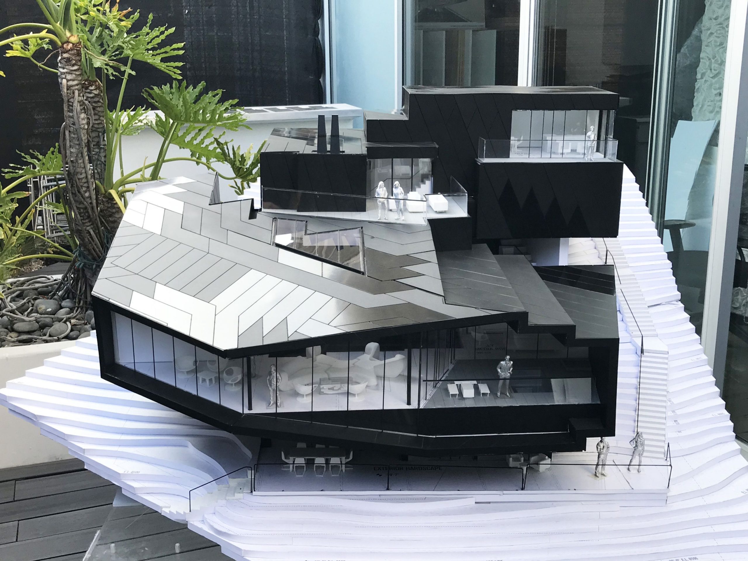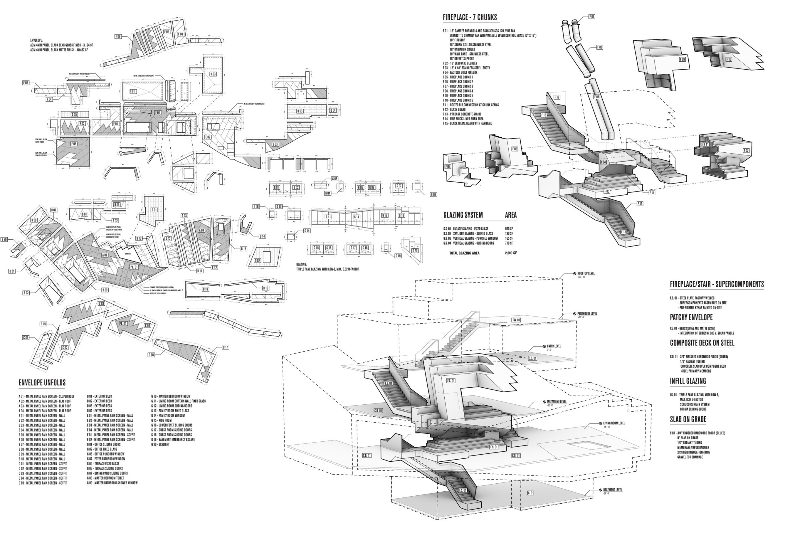 In line with TWA’s design approach and greater body of work, the Dark Chalet exemplifies the firm’s commitment to plan and detail a facade for integrated project delivery. “In the Dark Chalet, we are working with Southam Associates to deliver the black-on-black rainscreen envelope: we have assumed the 3D detailing to control how the pattern wraps, how the ‘metaseams’ are expressed, and how the photovoltaics get embedded in the system,” said TWA principal Tom Wiscombe. “We began with a full building drone scan of the waterproofed framing, and then squared our 3D model with the scan; Southam is providing further as-built dimensions as needed, and we are issuing fab files.”