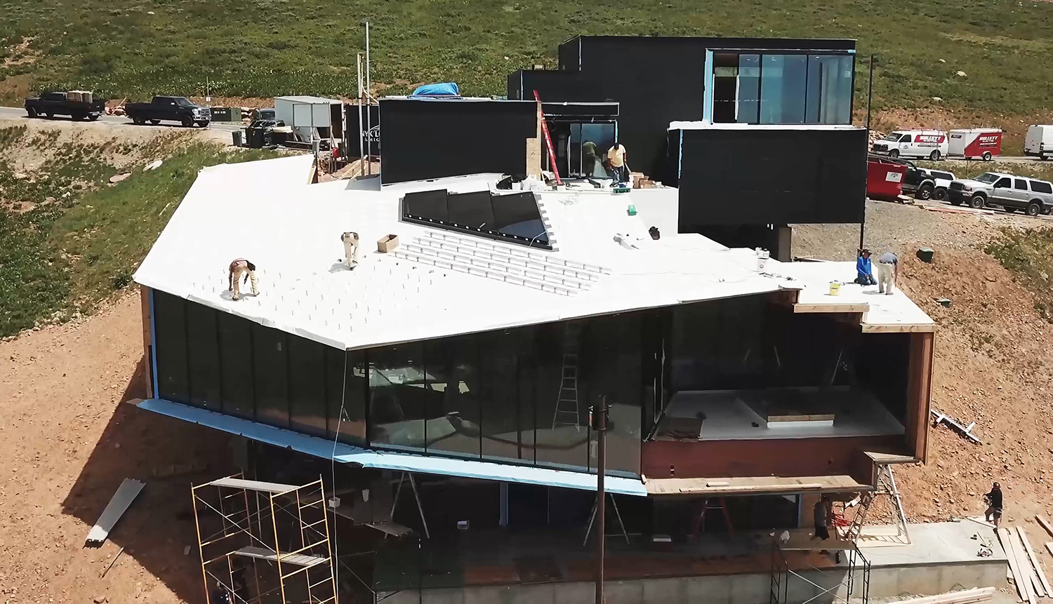 A black aeronautic mass is taking shape in Utah’s Wasatch Range. Dubbed the Dark Chalet, the project, designed by Los Angeles-based firm Tom Wiscombe Architecture (TWA), is a private residence perched prominently (and precariously) on Powder Mountain within the under-construction Summit Powder Mountain ski resort. The project is a demonstration of the firm’s characteristic playfulness and dedication to innovative design practices and captivates with gravity-defying structural work, an aluminum-composite rainscreen, and a photovoltaic panel array which effectively transforms the Dark Chalet into a veritable mountainside power plant.