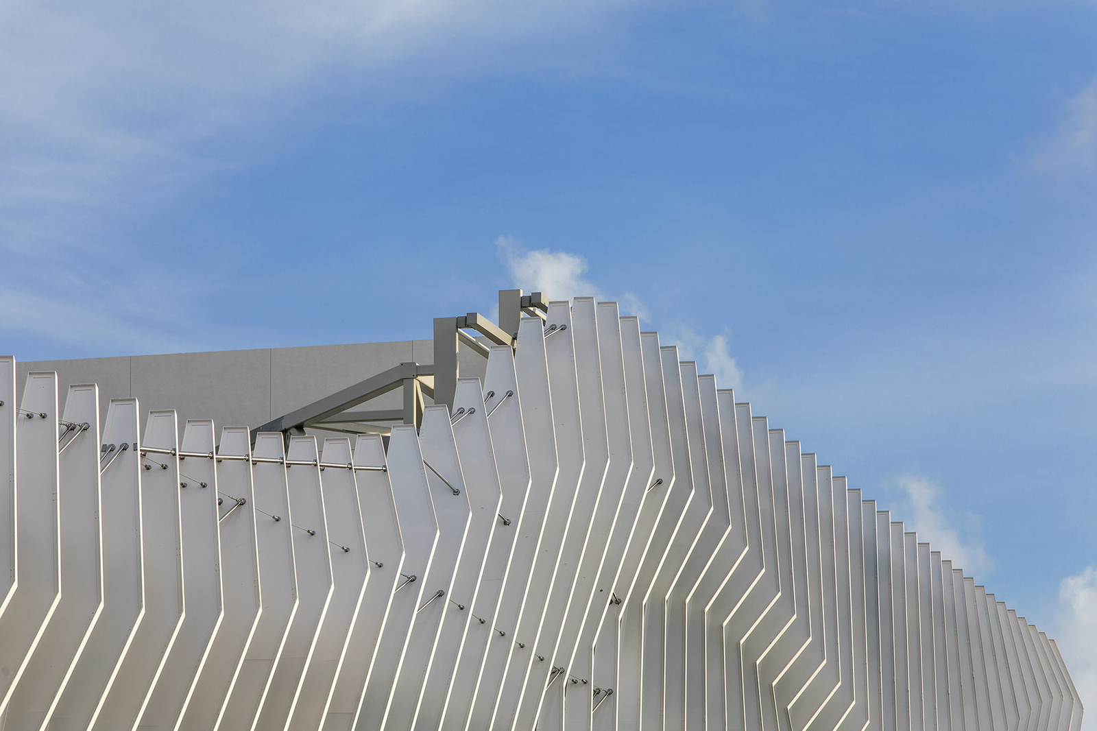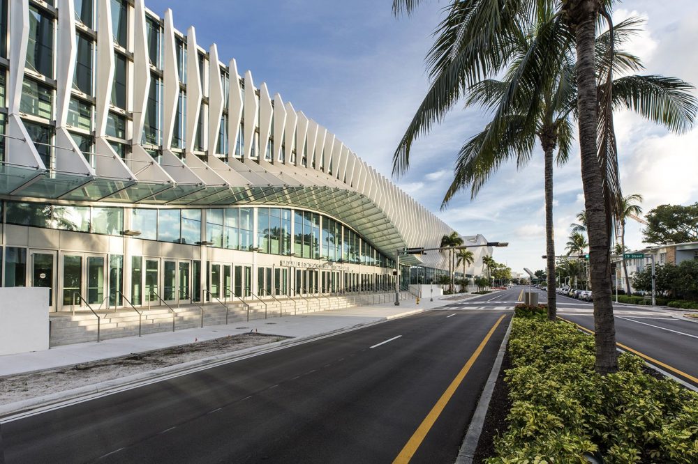 Undulating fins create a monumental entryway at the revamped Miami Beach Convention Center