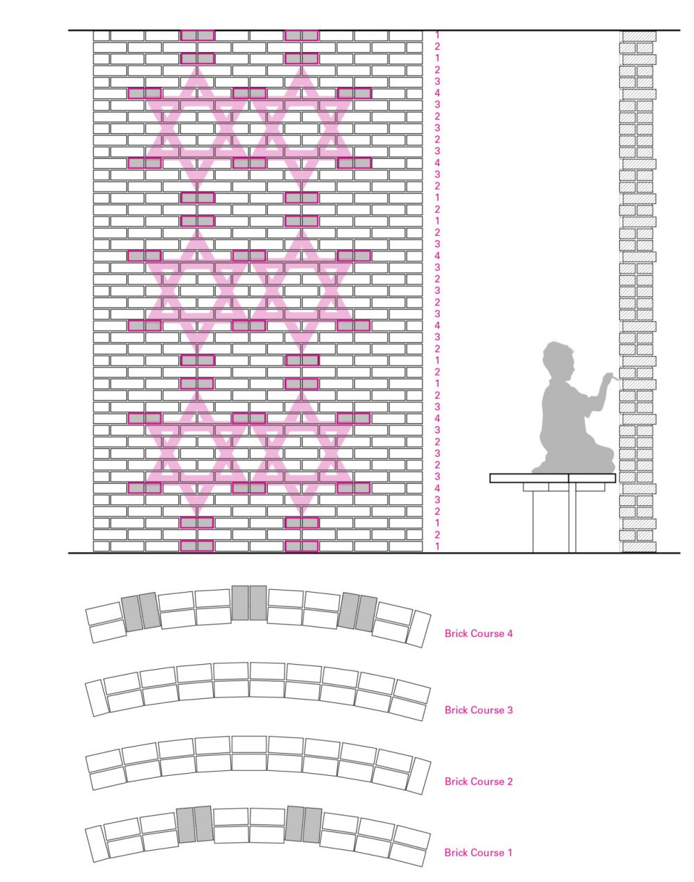 Outside of The Loop, Chicago’s commercial core, and the towers of Lake Shore Drive, Chicago is largely a mid-rise city of rowhouses, tenements, and warehouses. While designed according to contemporaneous styles, many are bonded in their use of brick and masonry, and, at least for their non-street facing elevations, the eponymous and variegated Chicago Common Brick. This context, and the intent to express Jewish faith and heritage, informed the design of the building’s fabric.