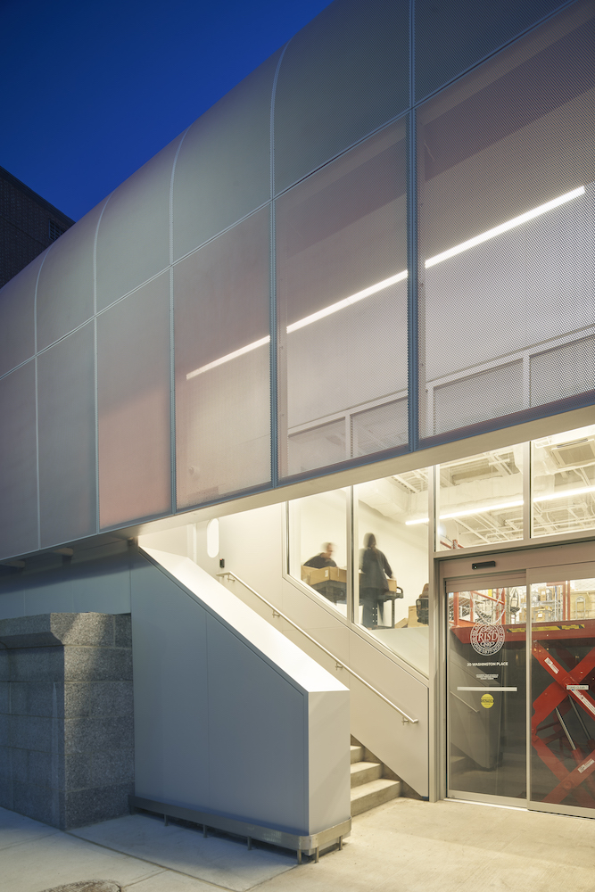 Providence, Rhode Island’s, College Hill is home to one of the finest collections of historic structures in the country, ranging from formal Federal to the ostentatious English Baroque. Both the campuses of Brown University and the Rhode Island School of Design (RISD) are based in the historic district and have over time absorbed numerous buildings in the area—the former Providence Washington Insurance Company (PWIC) was built in 1949 and acquired by RISD in 1988. In August 2019, WORK Architecture Company (WORKac) completed a substantial internal renovation of the property as well as an addition clad in curved anodized and perforated aluminum panels.